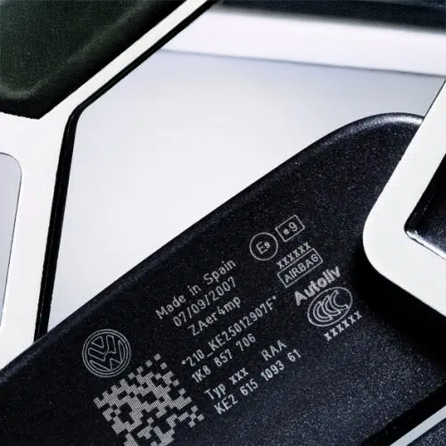 Автомобильная индустрия требует исключительной точности при взаимодействии с разнородными поверхностями: от литого алюминия и стали до высокотехнологичных композитов. Оборудование Macsa id позволяет формировать сложные графические элементы, коды 2D Data Matrix и QR-коды, полностью соответствующие отраслевым регламентам AIM-DPM и ISO/TS. Особое значение это приобретает при производстве деталей интерьера, в частности кнопок с функцией «день-ночь», где лазер обеспечивает идеально ровные края символов, пропускающих свет.